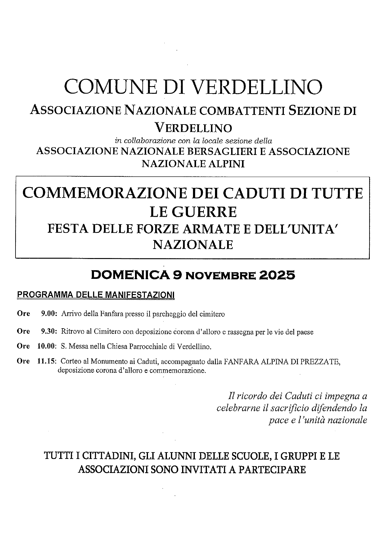 Date e orari 04 Nov 00:00 - Inizio evento 04 Nov 23:59 - Fine evento Per informazioni sul programma dettagliato degli appuntamenti religiosi e civili, consultare il programma nella sezione documenti. Aggiungi al calendario