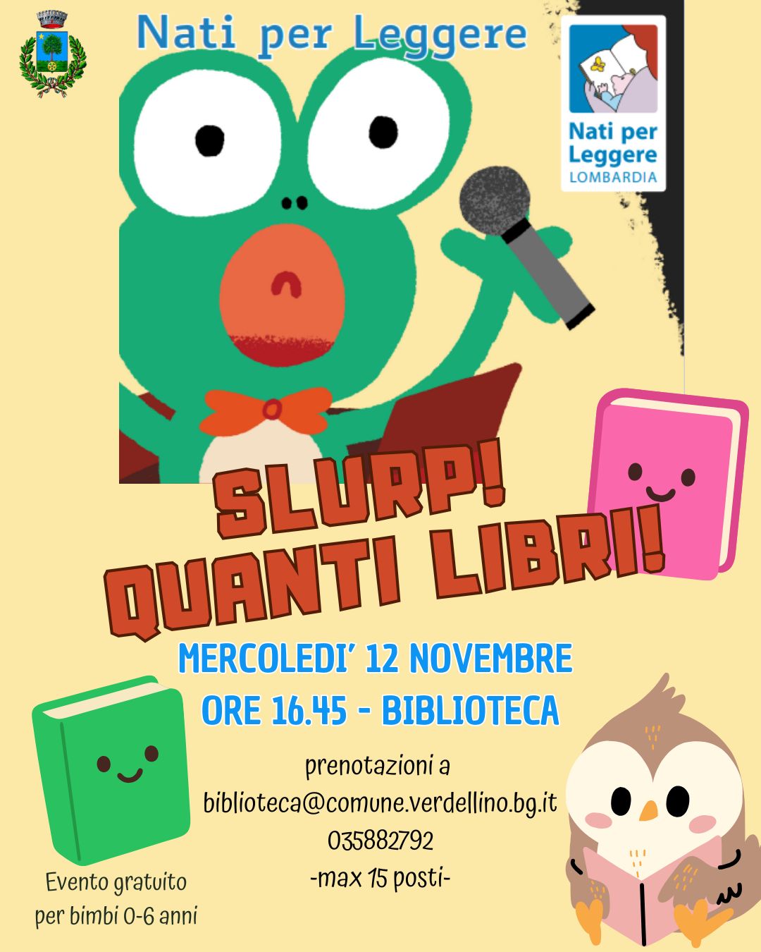 Prenotazione obbligatoria a biblioteca@comune.verdellino.bg.it oppure 035882792
