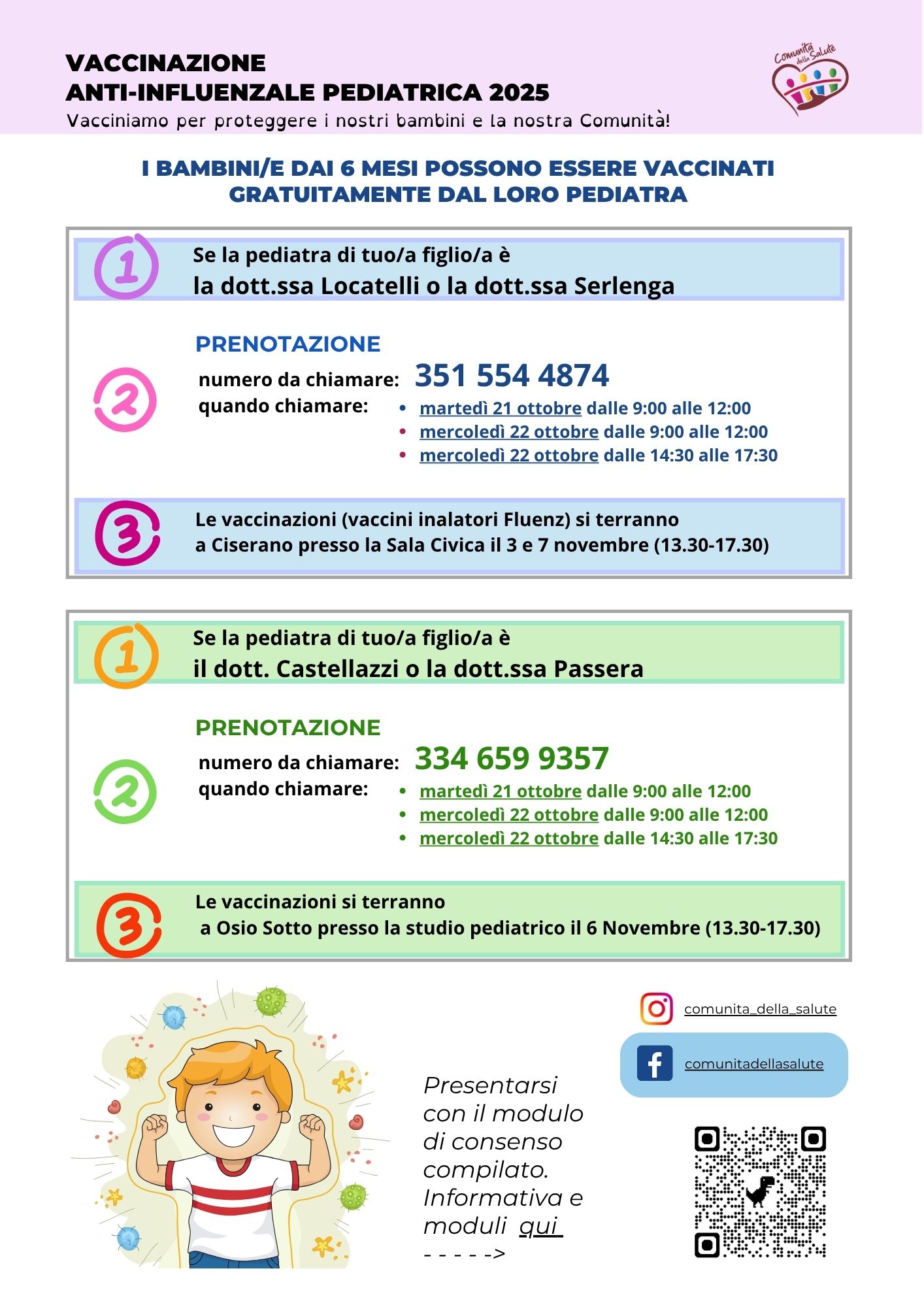 La Comunità della Salute in collaborazione con alcuni pediatri locali, anche quest’anno collabora alla campagna delle vaccinazioni pediatriche antiinfluenzali, facilitando la prenotazione e l’organizzazione di pomeriggi dedicati al vaccino.